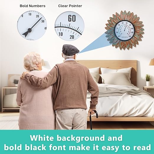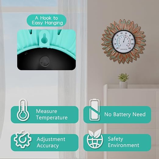 - Easy to Read: The delicate bronze metal flower shape and large black numbers make this decorative outdoor thermometer both clear to read from a distance and a beautiful addition to the wall. Measure about: 11.8" in diameter