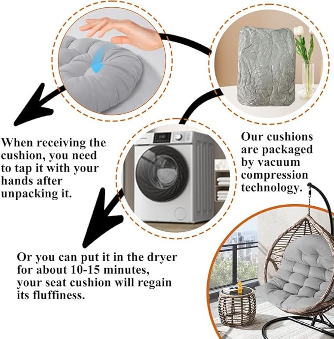 - [Easy Care]: Leisure swing chair seat cushions use easy care fabrics. Gently clean the seat cushion with mild detergent and cold water or wipe clean with a damp cloth.