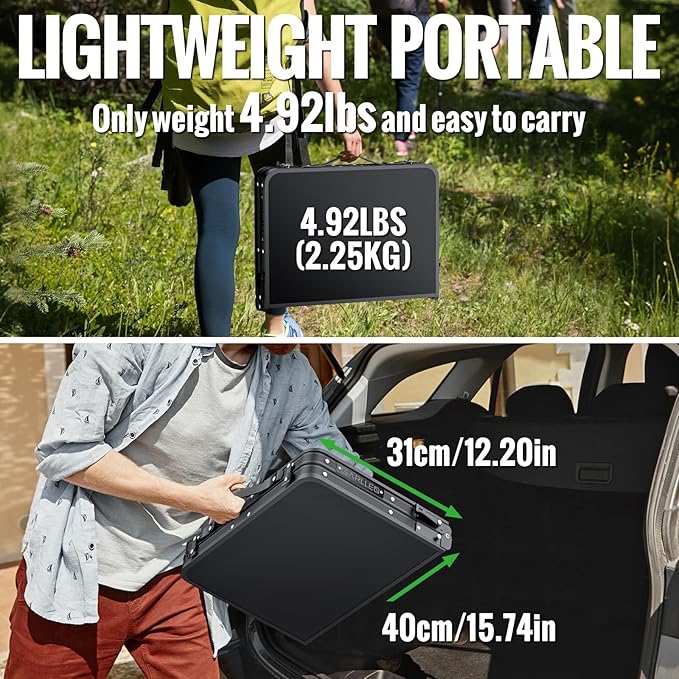 - πππππππππππ & ππππππππ: The folding table weights 4.92lbs(2.25kg) and folds up into 15.7"x12.2"x2.55"(40x31x6.5cm). The compact and lightweight design is perfect for home use when working, sturdy and outdoor use in camping, trip, sports events, etc
