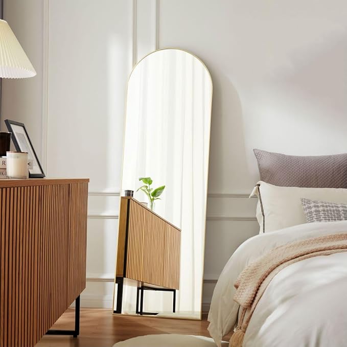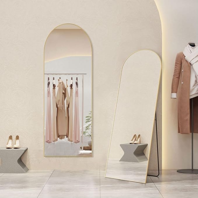 Arched Full Length Mirror, 64"x 21" Floor Mirror with Aluminum Alloy Thin Frame, Full Body Mirror Hanging or Leaning for Wall Bedroom Dressing Mirror Home Decor, Gold
