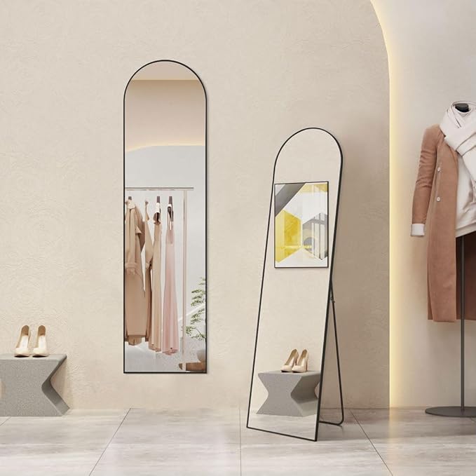 Arched Full Length Mirror, 59"x 16" Floor Mirror With Aluminum Alloy Thin Frame, Hanging or Leaning for Wall Bedroom Dressing, Home Decor, Black