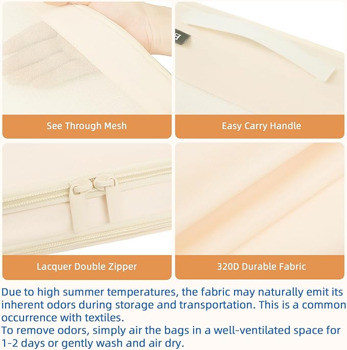 BAGAIL 4 Set/6 Set/8 Set Compression Packing Cubes Travel Accessories Expandable Packing Organizers (Square Mesh, 06-Beige)