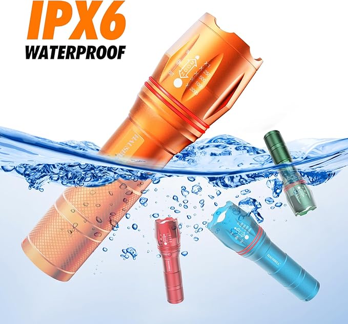 - Durable Construction: Not only this led flash light is made from aircraft-grade aluminum alloy, but our flashlights high lumens battery powered is built to withstand tough conditions. It's also a waterproof flashlight, so you don't have to worry about using it in the rain or near water