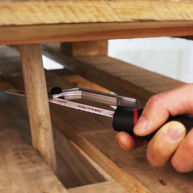 HAUTMEC Mini Hacksaw, 10" Compact Hacksaw with Cutting Guide Design, Tool-Free Blade Change, Compatible with 10"/12" Blades, Lightweight Hack Saw for Metal, PVC & Wood Cutting – HT0427