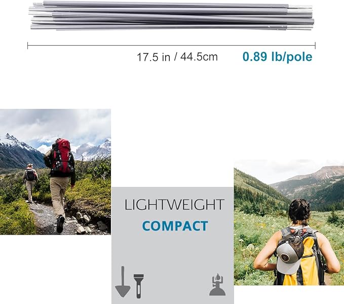 Preassembled Tent Poles Replacement, Gray 7001 T6 Heated Aluminum Tent Poles 1 Pole Pack
