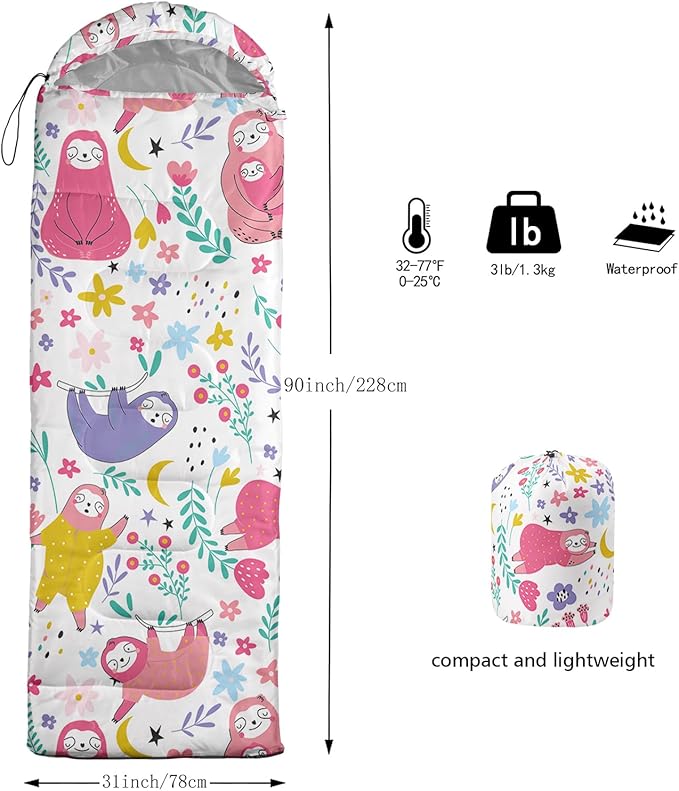 - 【Fits For 3 Seasons】: Size - 31 by 90 inches (W x D). Our Moon Stars sleeping bag can be used in 3 seasons with a design temperature of 32℉-77℉(0℃-25℃)