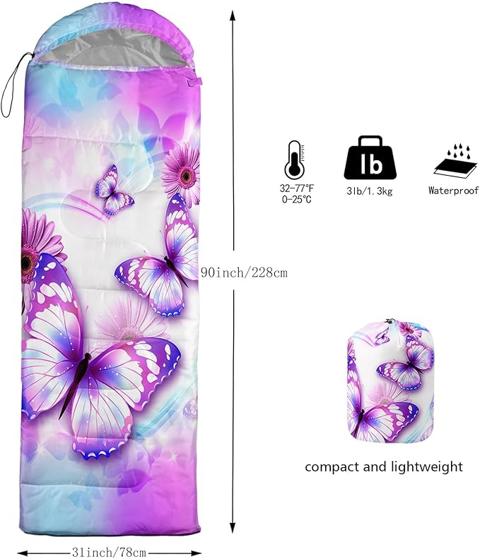 - 【Fits For 3 Seasons】: Size - 31 by 90 inches (W x D). Our Tie-dye Gradient sleeping bag can be used in 3 seasons with a design temperature of 32℉-77℉(0℃-25℃). These Sleeping bags also have a weather resistant waterproof design to keep you warm and prevent you from any dampness