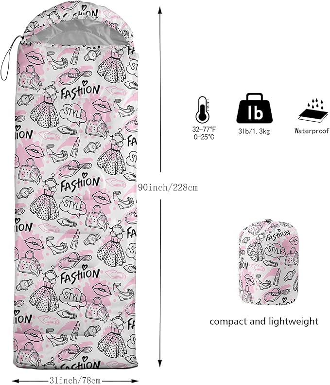 - 【Fits For 3 Seasons】: Size - 31 by 90 inches (W x D). Our Fashion Style sleeping bag can be used in 3 seasons with a design temperature of 32℉-77℉(0℃-25℃)