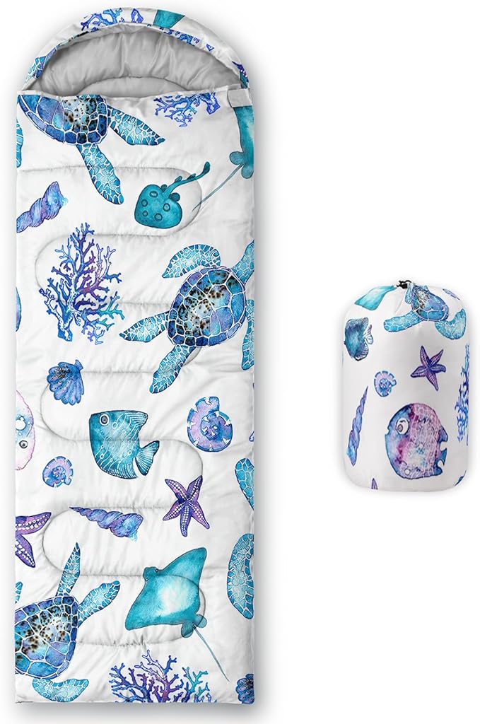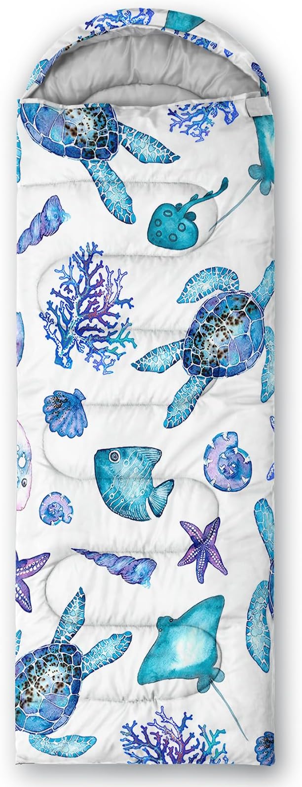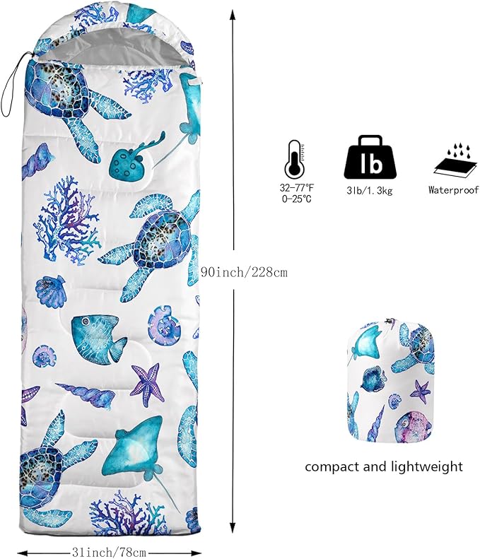 - 【Fits For 3 Seasons】: Size - 31 by 90 inches (W x D). Our Coral Gold Fish sleeping bag can be used in 3 seasons with a design temperature of 32℉-77℉(0℃-25℃)