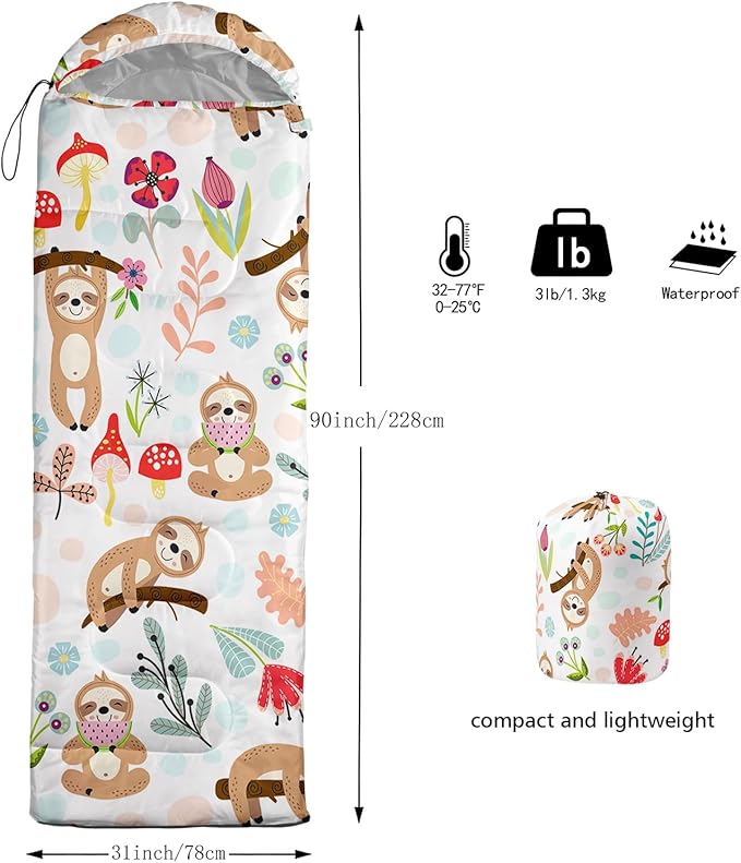 - 【Fits For 3 Seasons】: Size - 31 by 90 inches (W x D). Our Animals sleeping bag can be used in 3 seasons with a design temperature of 32℉-77℉(0℃-25℃)