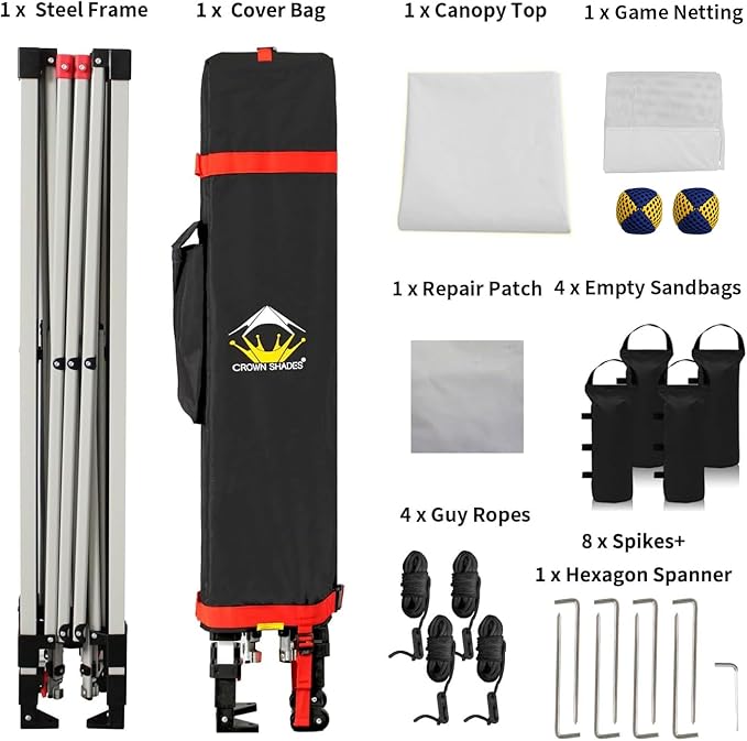 CROWN SHADES 10x10 Pop Up Canopy Tent with Game Netting - Beach Tent with One Push Setup - Outdoor Sun Shade for Events, Parties, Camping with STO-N-Go Cover Bag, Silver Coated Top, White
