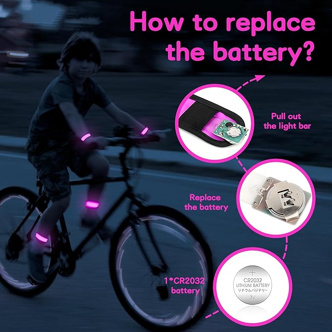 - Reusable: Each led wristband can be replaced with batteries when they run out, making it easy to continue using. Light up wristbands uses 1 × CR2032 batteries and can be purchased at most major stores. You will receive 6 pcs pink light up snap bracelet