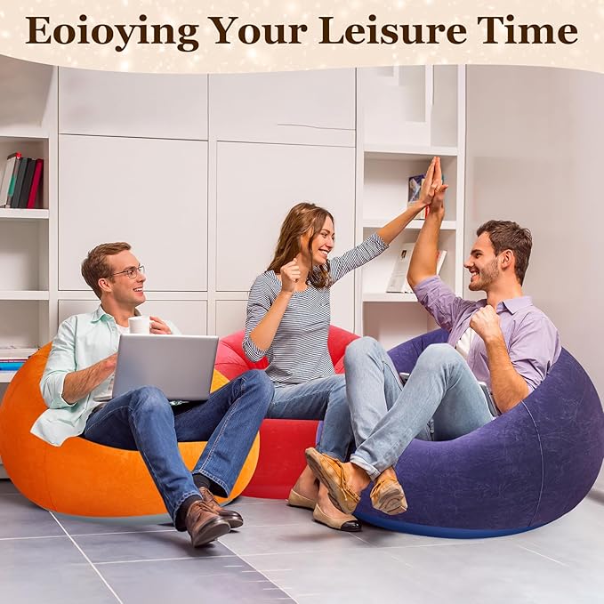 - Soft and Comfortable: our inflatable sofa bean bag is made from quality flocked PVC, which is the epitome of comfort and softness; This skin friendly material makes it can withstand robust use, long lasting and not easy to break; These sturdy yet cozy blow up chairs will bring you more relaxing experience