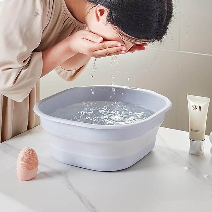 - The collapsible wash basin has a simple design, easily pops up when in use and folds down to a flat surface when not in use, only 3-5cm thick, saving over 80% storage space. Equipped with hanging holes for easy hanging and carrying