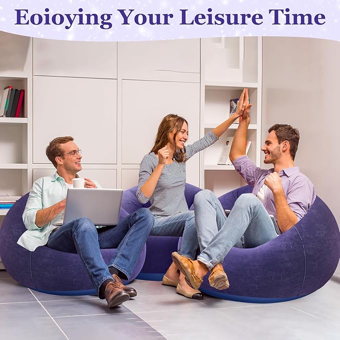 - Soft and Comfortable: our inflatable sofa bean bag is made from quality flocked PVC, which is the epitome of comfort and softness; This skin friendly material makes it can withstand robust use, long lasting and not easy to break; These sturdy yet cozy blow up chairs will bring you more relaxing experience