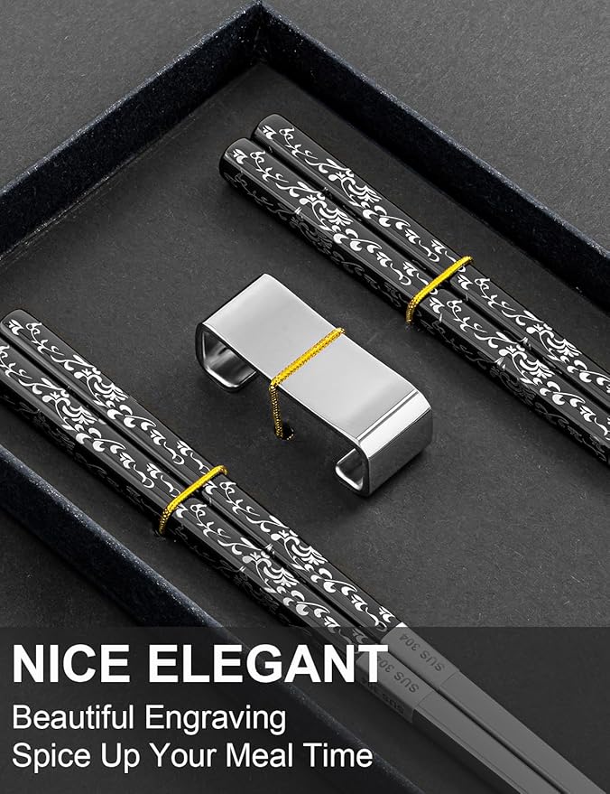 - 【NICE ELEGANT】 The chop sticks with nice engraving pattern. Classic Asian court style, elegant and stylish, they make eating at home feel like a fancy restaurant experience. Spice up your meal time