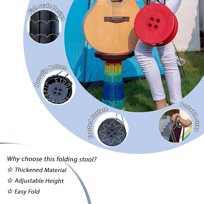 - Durable and Easy to Clean: Made from high-quality, thickened PP material, this retractable stool is both durable and easy to clean, perfect for various outdoor conditions and long-term use.
