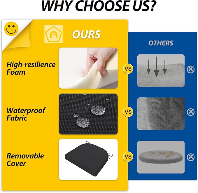 - Wide Use & Tips: These outdoor dining chair cushions fit pools, patios, balconies, decks, backyards, and gazebos. Foam inserts and covers are packed separately in bags and placed in one box—check all parts. Easy assembly required