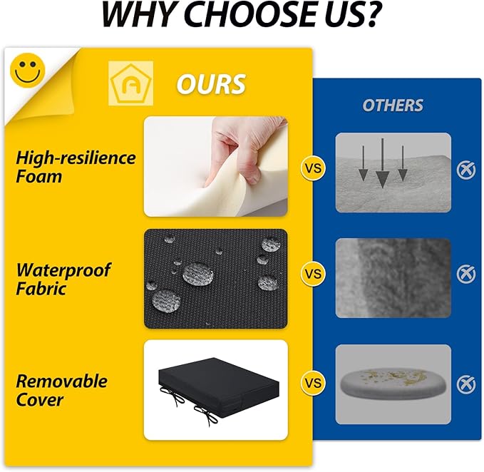 - Wide Use & Tips: These outdoor dining chair cushions fit pools, patios, balconies, decks, backyards, and gazebos. Foam inserts and covers are packed separately in bags and placed in one box—check all parts. Easy assembly required
