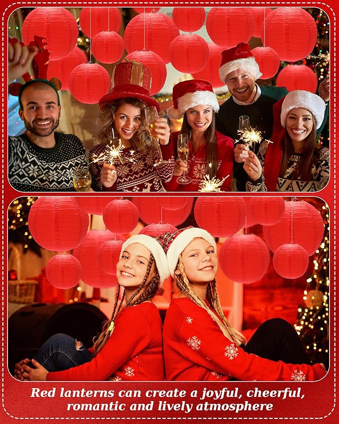- package contents: you will get 48 pcs of red round paper lanterns, coming with 4 different sizes,it can be worn with paper flowers, ribbons and stickers, and the quantity and the sizes are enough to meet your decorative needs for daily or festivals