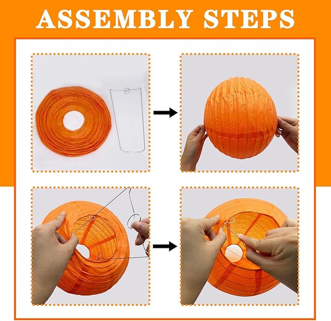 - ?�Easy to assemble?? Our lanterns are easy to unfold, assemble and hang up, and they can be folded flat for storage. All you need to do is to pull the two ends gently to open the lantern and insert the metal frame (included in the pack) into the lantern to keep its shape.