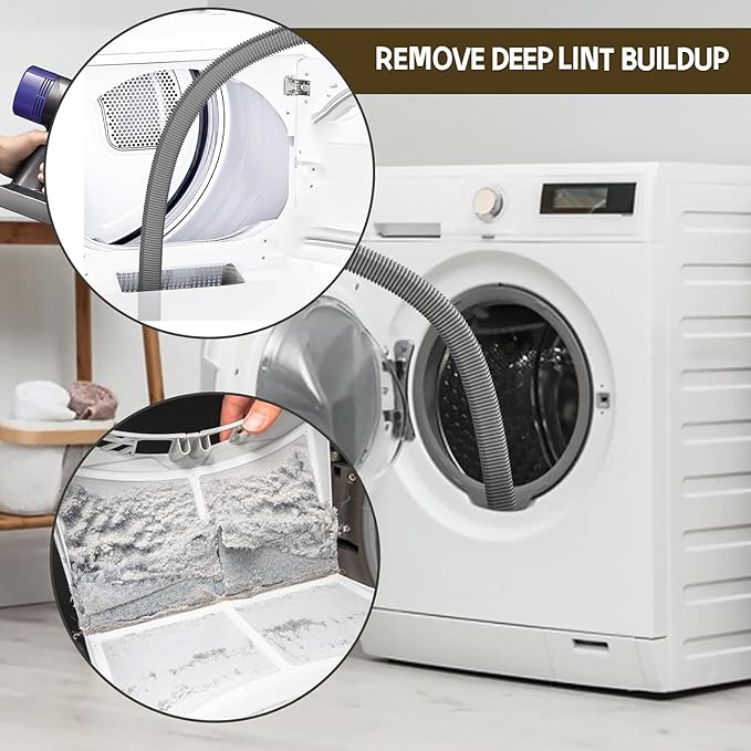 - Dryer Vent Vacuum Hose Attachment --- 31.8 Inches Long Hose, Designed to Efficiently Clean The Lint Inside The Dryer, Equipped With Strong Suction, Can Quickly Remove Lint, Dust And Fiber Accumulated in The Dryer Screen, Drum and Vent Pipe, Effectively Preventing Clogging, To Protect The Dryer From Running Efficiently, The Use Of This Equipment Can Reduce Your Maintenance Costs And Save You Money.