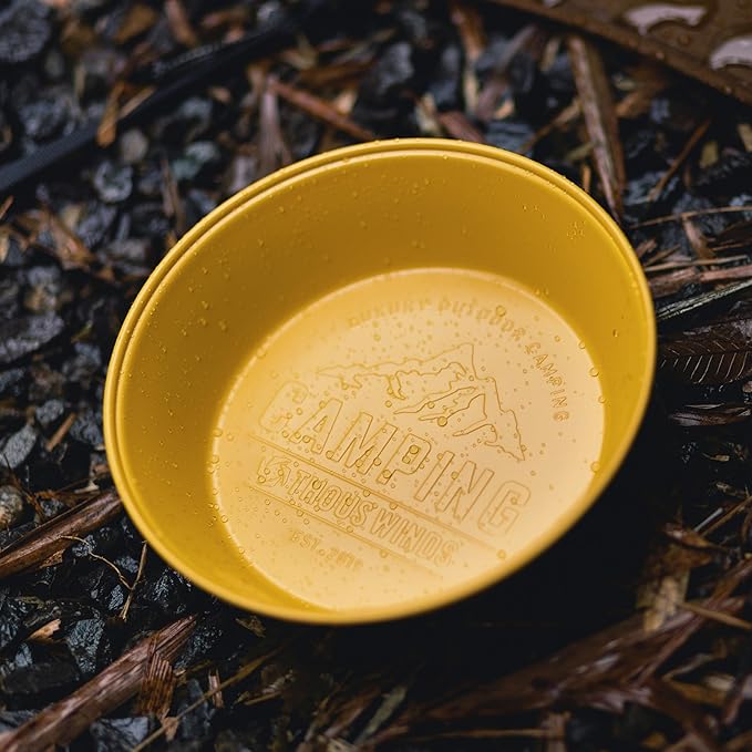 Camping Plates 2pcs Set, Stainless Steel Deepdish, Reusable Dinnerware Cookware, Yellow