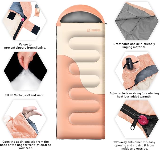 Sleeping Bags for Adults&Kids,Lightweight Waterproof Warm Weather Sleeping Bag,Compact Portable Sleeping Bag for Camping,Essentials Gear for Camping Hiking Outdoor Travel