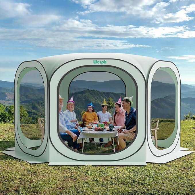 - Effortless Setup & Storage: Ideal for 8-10 people, this portable screen tent pops up in just one second, saving you time and effort