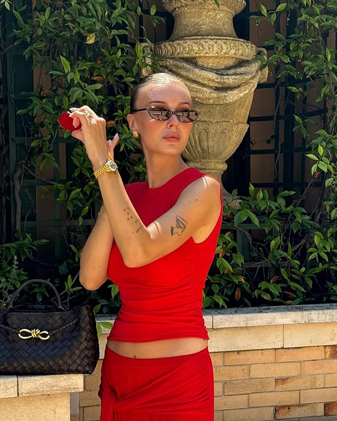 Retro Oval Sunglasses for Women Chic Cat Eye 90s Sunnies Lightweight Narrow Shades Trendy UV protection Sun Glasses