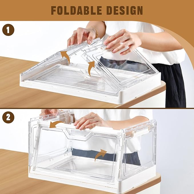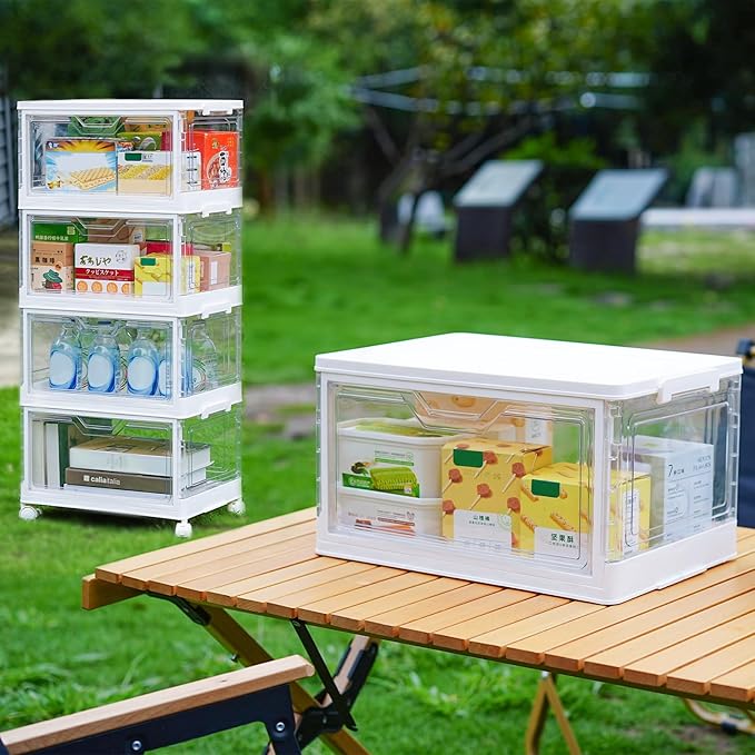 Collapsible Plastic Storage Bins with WheelsClear Stackable Storage Bins with Lid Stackable Storage Bins with Open Door Folding Storage Bins Organizer for Closet Bedroom Living Room