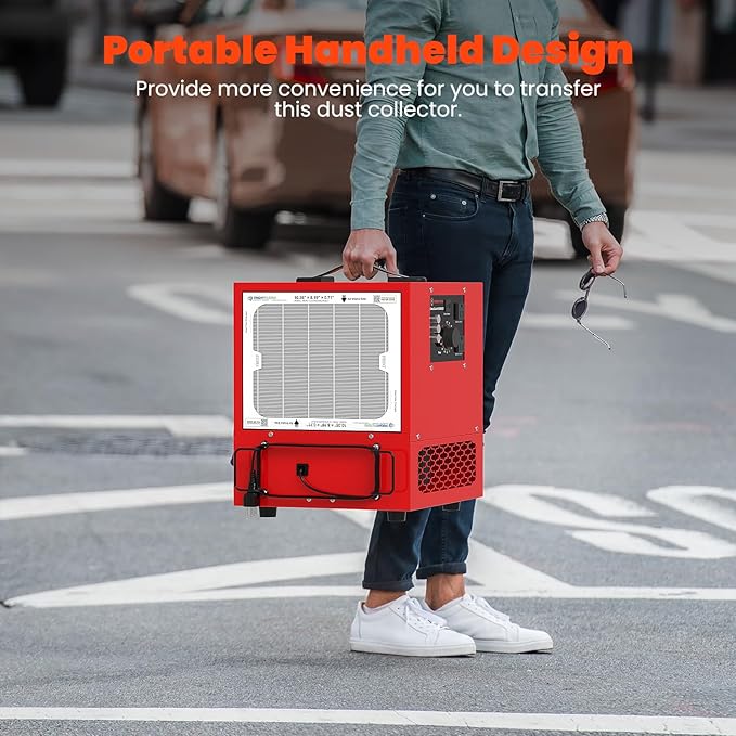 - Piano Key Switch & Timer Function: The piano key switch allows for quick operation to turn the dust collector on or off. The timer function lasts up to 120 minutes, making it perfect for woodworking, carving, home workshops, or renovation