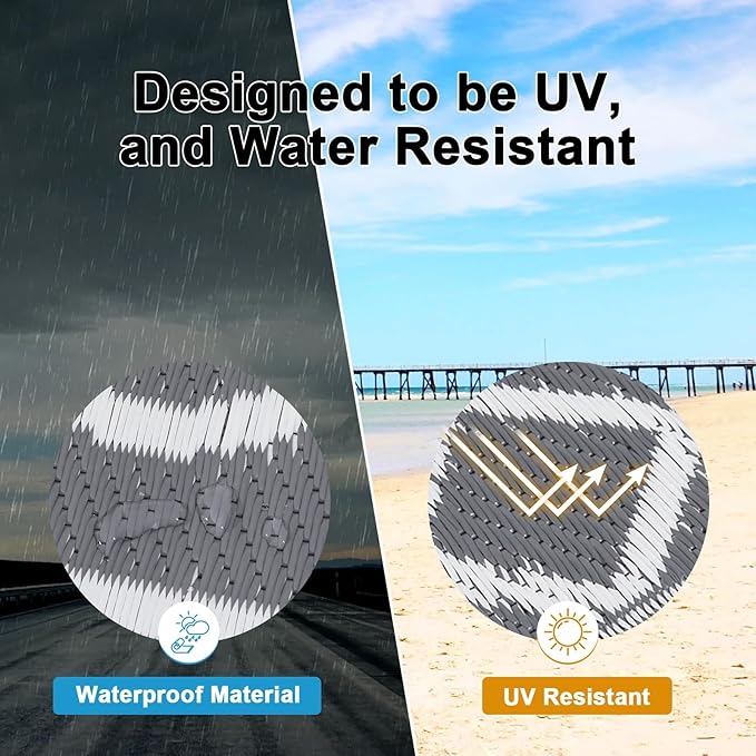 - Premium Material Outdoor Doormat: This reversible outdoor doormats are made from high quality recycled plastic straws and be woven tightly, durable enough, no fade, water resistant. It's soft and comfortable to walk on barefoot.Plus, the high-end UV coating and edge heat treatment technology prevent fading and sun damage without worrying about wear and tear.