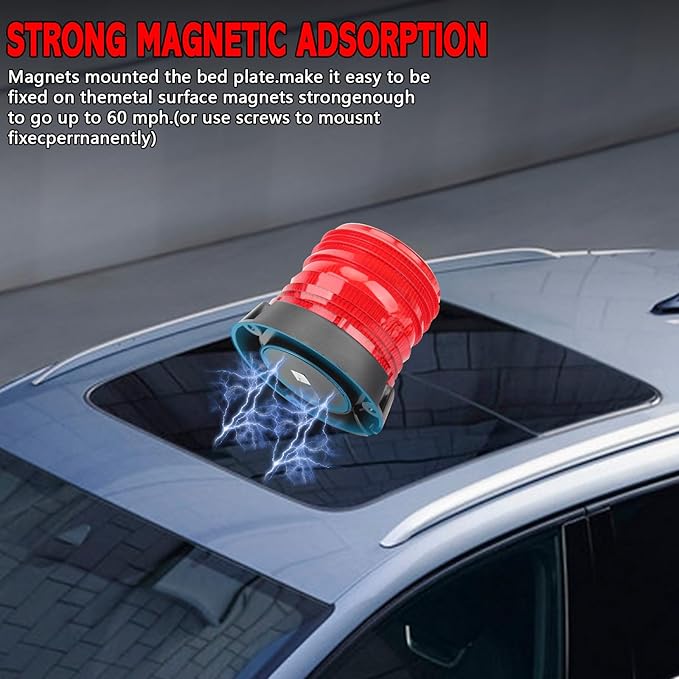 - 【MAGNETIC BASE】Emergency lights - No need to struggle with mounting. Each Warning Light is equipped with a heavy-duty magnet on the bottom to attach to the roof of your car, truck, van or emergency vehicle in seconds without compromising the appearance of your vehicle.