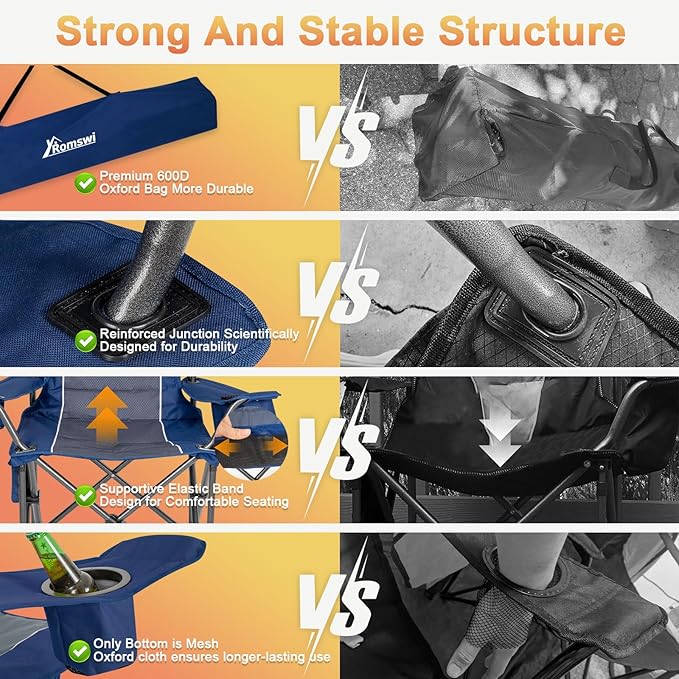 - 100% Oxford Fabric: Our large outdoor folding chair is crafted from a double-layer, rip-resistant 600D Oxford fabric and features a sponge cushion, ergonomic padded high back and armrests ensuring both durability, breathability and comfort