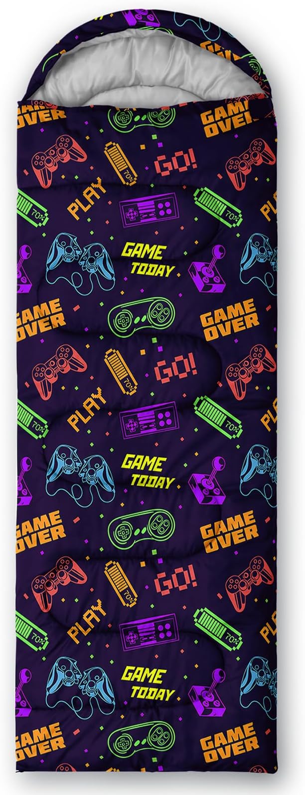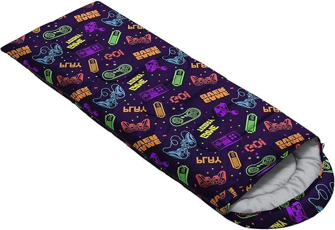 - Unique Game Design:This Game pattern sleeping bag is made of 3D digital printing with vibrant colors and patterns,size: 31W x 90L inches,temperature range: 32℉-77℉ (0℃-25℃),it also also have a weather resistant waterproof design to keep you warm and prevent you from any dampness,can be used in 3 seasons