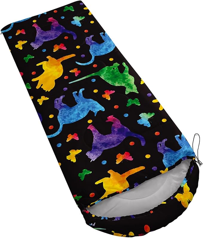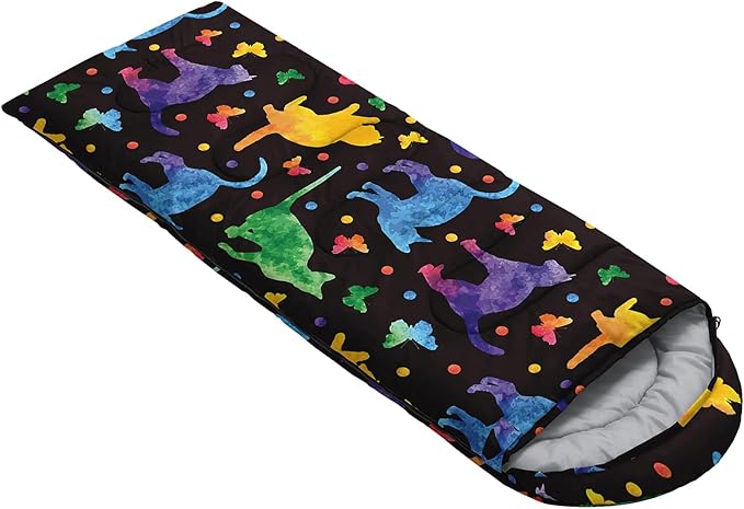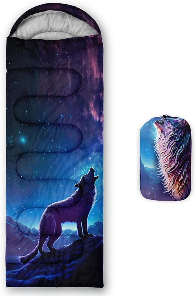 - Unique Wolf Design:This Wolf pattern sleeping bag is made of 3D digital printing with vibrant colors and patterns,size: 31W x 90L inches,temperature range: 32℉-77℉ (0℃-25℃),it also also have a weather resistant waterproof design to keep you warm and prevent you from any dampness,can be used in 3 seasons