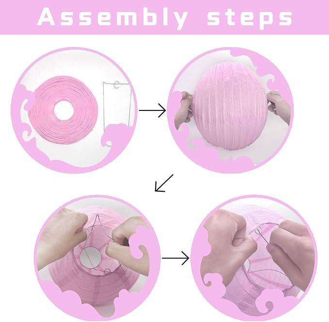 - ?�Easy to assemble?? Our lanterns are easy to unfold, assemble and hang up, and they can be folded flat for storage. All you need to do is to pull the two ends gently to open the lantern and insert the metal frame (included in the pack) into the lantern to keep its shape.