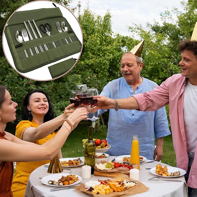 - Uses: The camping tableware roll bag is perfect for organizing utensils for your family or friends outings to the beach, park or picnic, hiking, BBQs, camping, and more. This chef roll bag can also be a surprising gift for celebration festivals, such as birthdays, Thanksgiving Day, Christmas, Fathers Day, etc.