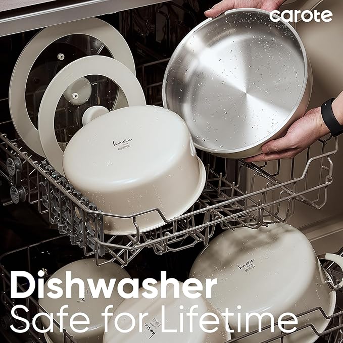 - Sturdy detachable handles allow easy stacking and storage, saving up to 70% of cabinet space, and transition seamlessly from stovetop to oven, table, or fridge.