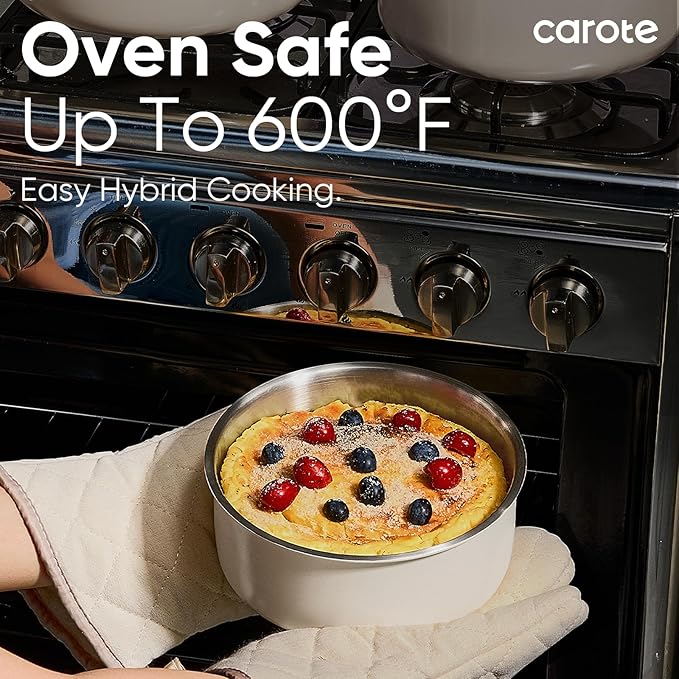 - Made from high-quality 18/8 stainless steel, oven-safe up to 600°F, with flared, cast edges for drip-free pouring, keeping your countertops clean. Compatible with all stovetops.