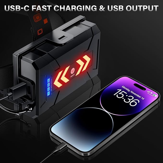 - ๐๐๐-๐ ๐ ๐๐ฌ๐ญ ๐๐ก๐๐ซ๐ ๐ข๐ง๐ & ๐๐จ๐ฐ๐๐ซ ๐๐๐ง๐ค ๐ ๐ฎ๐ง๐๐ญ๐ข๐จ๐ง: Rechargeable headlamp designed Type-C interface and uses fast charging chip for fast full charged 3-5 hours, the USB output port can be used as a power bank for charging your mobile phone or other devices during emergencies