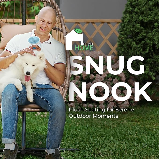 Econohome Hanging Egg Chair with Stand - Indoor/Outdoor Swing Hammock Chair with Plush, Washable Cushions, 350LBS Capacity, Ideal for Relaxation in Bedrooms, Balconies, Gardens, and Patios
