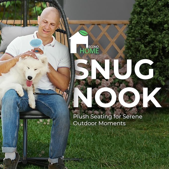 Econohome Hanging Egg Chair with Stand - Indoor/Outdoor Swing Hammock Chair with Plush, Washable Cushions, 350LBS Capacity, Ideal for Relaxation in Bedrooms, Balconies, Gardens, and Patios