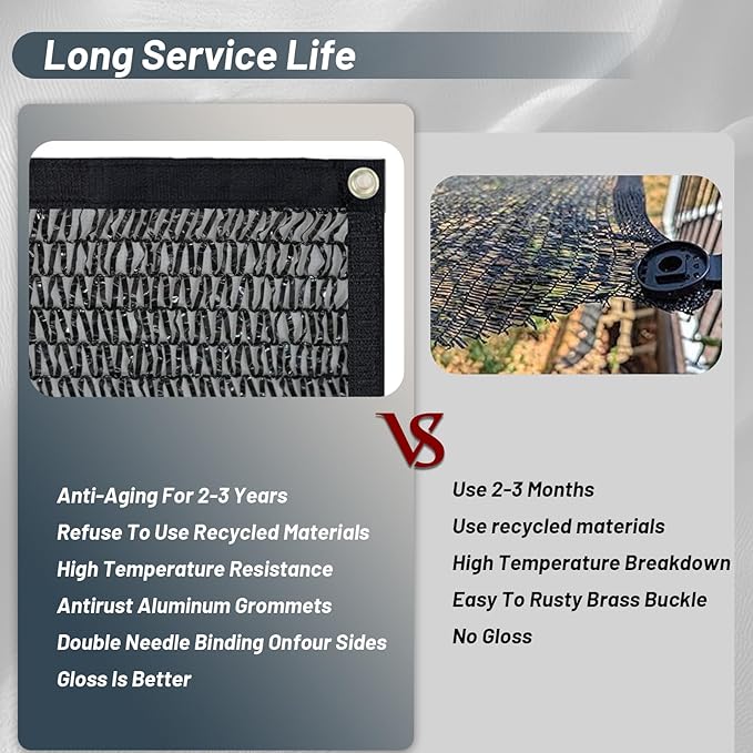 - ??0% Shading Rate?‘Made of 100% New High Density Polyethylene (HDPE) fabric material, has a shading rate up to 40% can avoiding direct sunlight while allowing free air circulation.