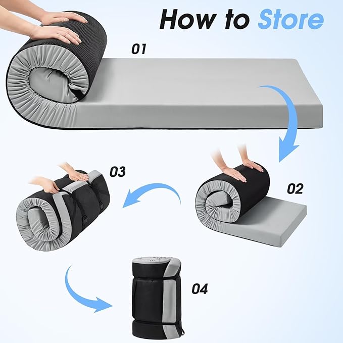 CYMULA Memory Foam Camping Mattress Pad,3inch Sleeping Pad for Camping,Non-Slip Bottom Floor Cot Car Mattress Bed with Retaining Portable Roll up Mattress Pad Mat for Travel Truck Guest Bed Tent