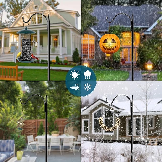 - ?�MULTIPLE APPLICATIONS?‘Premium metal Iron bird feeder pole can be used to hang bird feeders, flower pots, solar lights, lanterns, festival decorations, baskets, wind chimes by your window or the garden path. These heavy duty hangers are also very suitable for hanging flower balls on both sides of the wedding aisle, which will make your wedding more elegant and grand