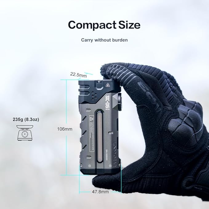 - Palm-Sized 4360 Lumen - Unmatched performance in compact EDC design. Delivers 405m beam range & ultra-bright 4360 lumens. Features anti-slip grooves + dual batteries for extended grip comfort during night hikes.