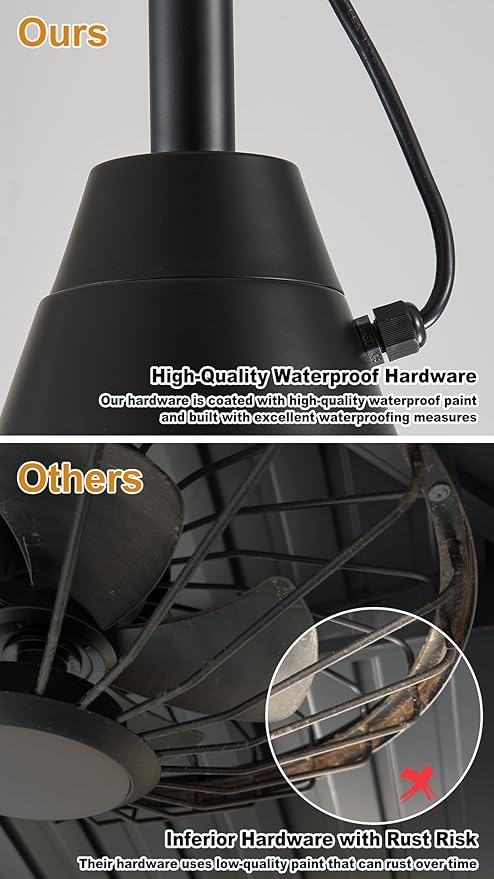 - π Versatile Ceiling Fan for Any Space π : Our outdoor ceiling fans redefine expectations. Crafted with waterproof features, they are ideal for outdoor spaces like gazebos. With top-notch materials and robust construction, these fans endure harsh weather conditions. Equally suitable indoors, they effortlessly add elegance to any room. Experience style and durability fused into one exceptional ceiling fan!