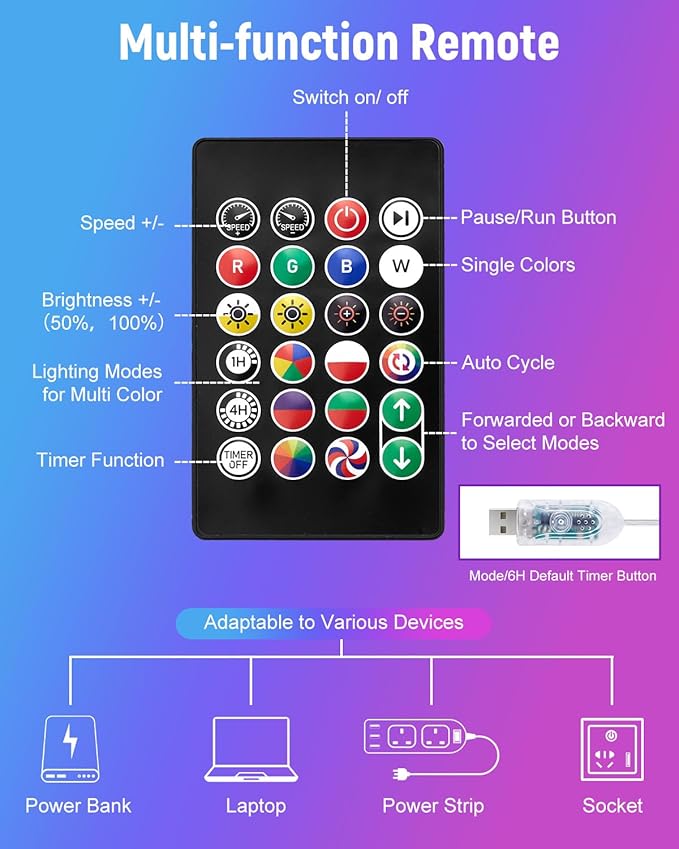 - Customizable Settings: Set timers to automatically turn your usb fairy lights on and off, and adjust the brightness and speed to suit your needs. Whether you want a soft glow for relaxation or vibrant colors for celebrations, these fairy lights indoor can do it all
